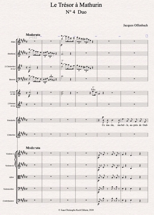 Un nouveau format de vidéo qui permet de vous faire découvrir ce quatuor inédit des Brigands (et son livret particulièrement croustillant) publiés dans le cadre de l’OEK, tout en suivant la partition. Ce numéro a été supprimé par le compositeur lors des répétitions. Il figure en annexe de notre édition critique des Brigands réalisée pour Boosey & Hawkes dans le cadre de l'Offenbach Edition Keck. Dans ce fichier Midi, les parties vocales ont été remplacées par des sons d'instruments (flûte, clarinette et basson). Cette publication électronique a un but documentaire avant toute chose. En attendant que cette musique puisse être interprétée en concert. Pour toute information complémentaire, s'adresser aux éditeurs : orphee58@wanadoo.fr